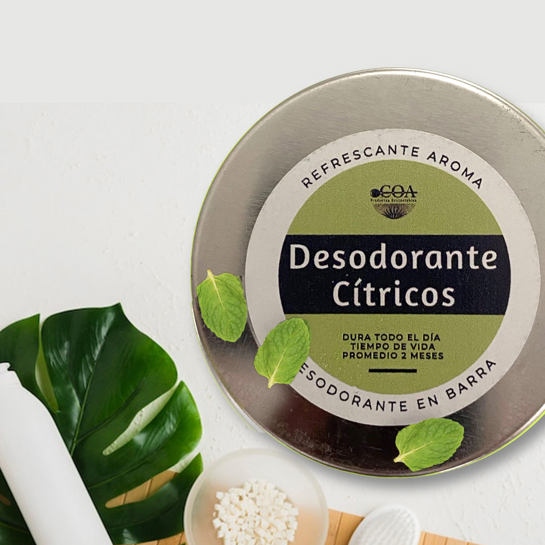 Cítricos: Base de manteca de karité, cera de abeja, aceite de caléndula, biomasa de cítricos (bactericida natural) y bicarbonato de sodio, con el aroma más fresco de nuestra línea.